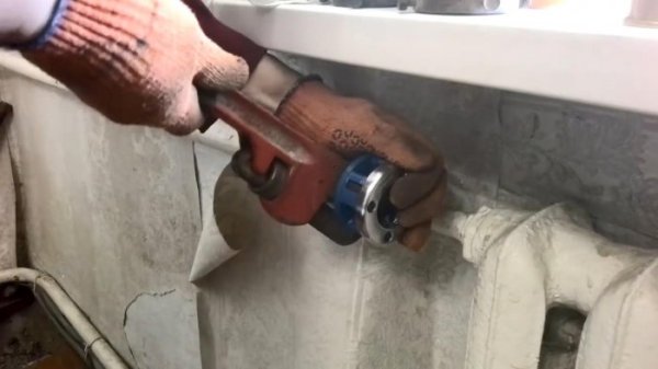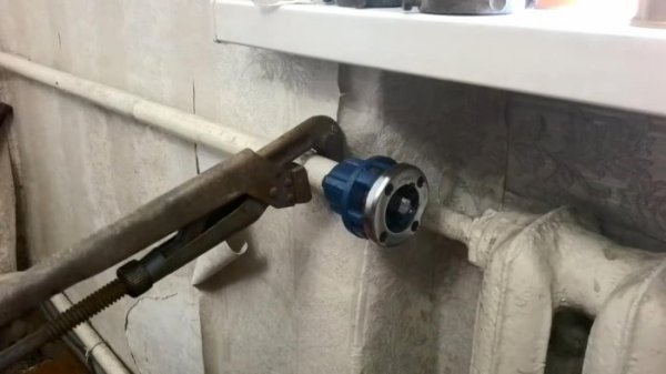 По правилам, клупп необходимо вращать специальным ключом – трещоткой. Но если дополнительные траты не желательны, то вполне подойдет и разводной ключ. Цепляем ключ за заднюю юбку клуппа и начинаем проворачивать инструмент вокруг трубы несколько раз, чтобы резцы вошли в зацеп.