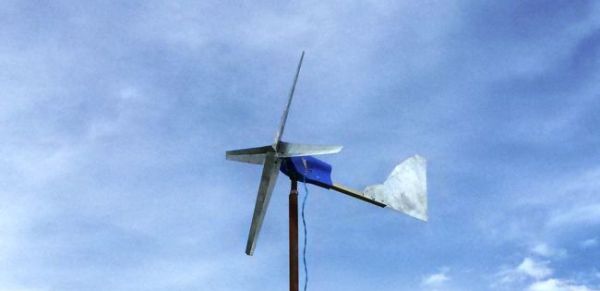 Дальше занимаются отладкой ветрогенератора. Устанавливают его на открытом месте, располагая навстречу ветру. Корректируют угол отгиба на отогнутых частях лопастей, уменьшая его к краям до 10…15°.